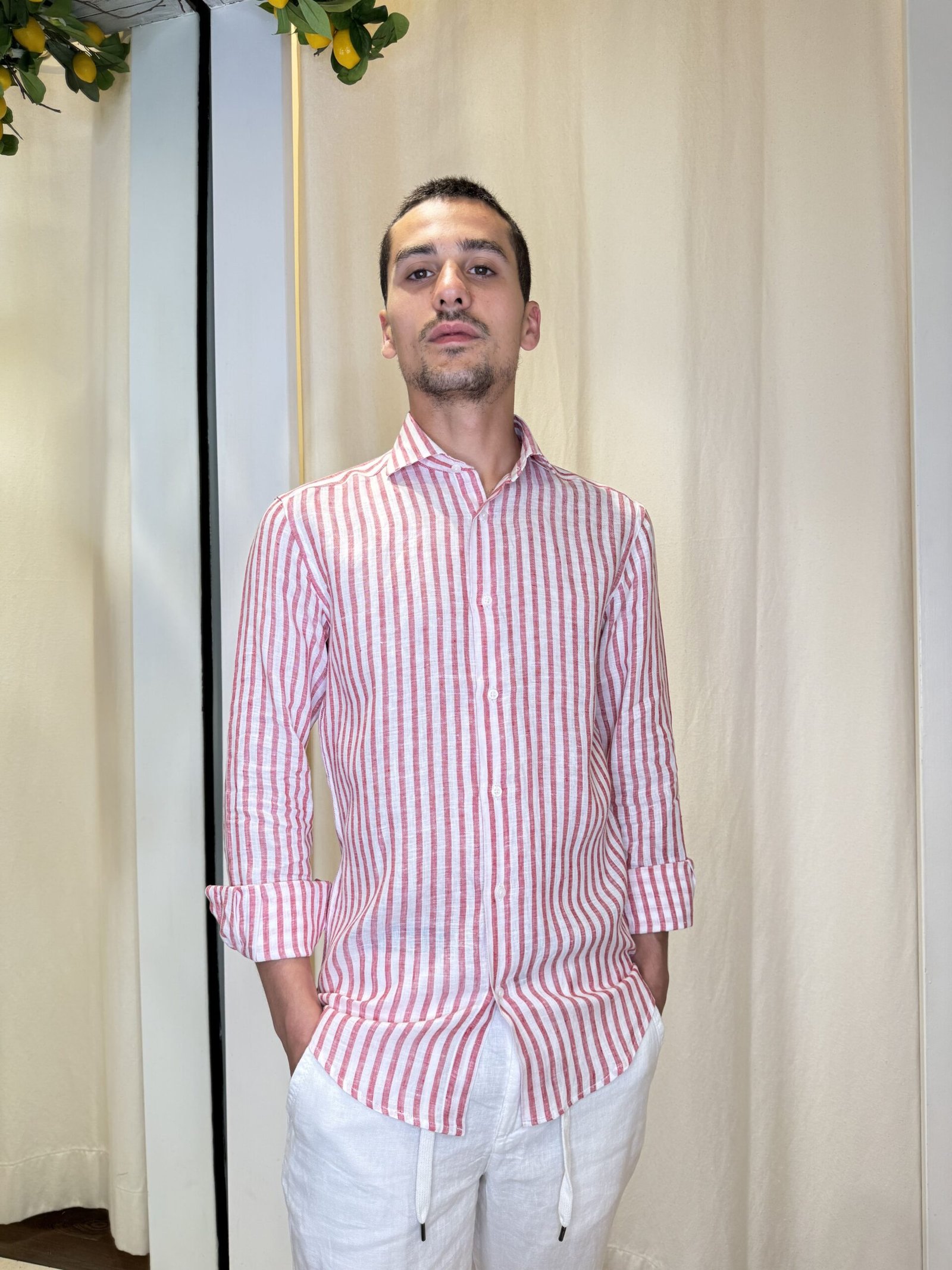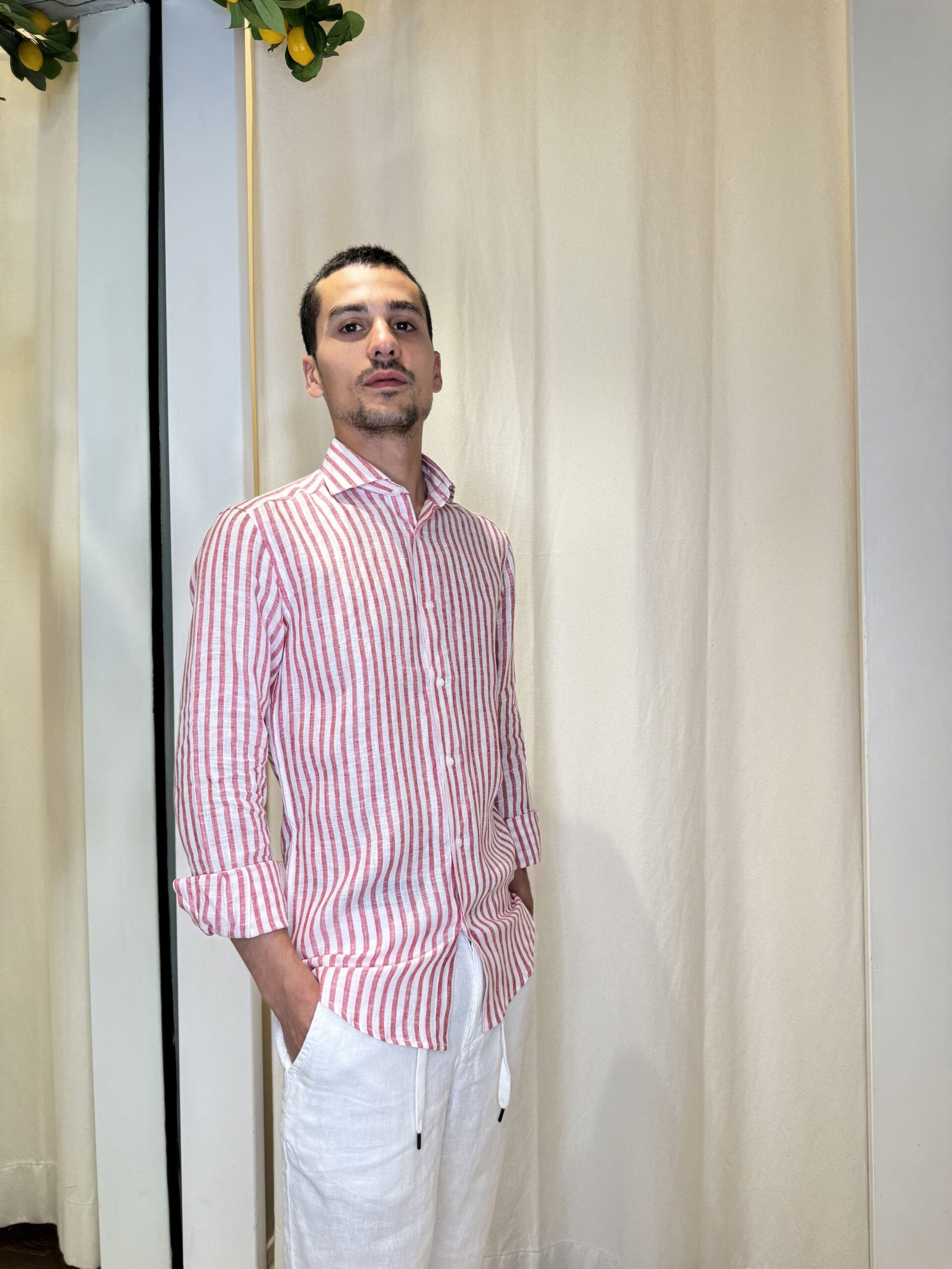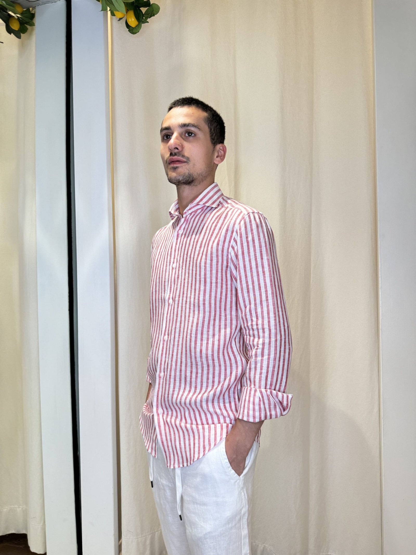 Camicia elegante a righe color rossa a maniche lunghe (regolabili) e collo francese.