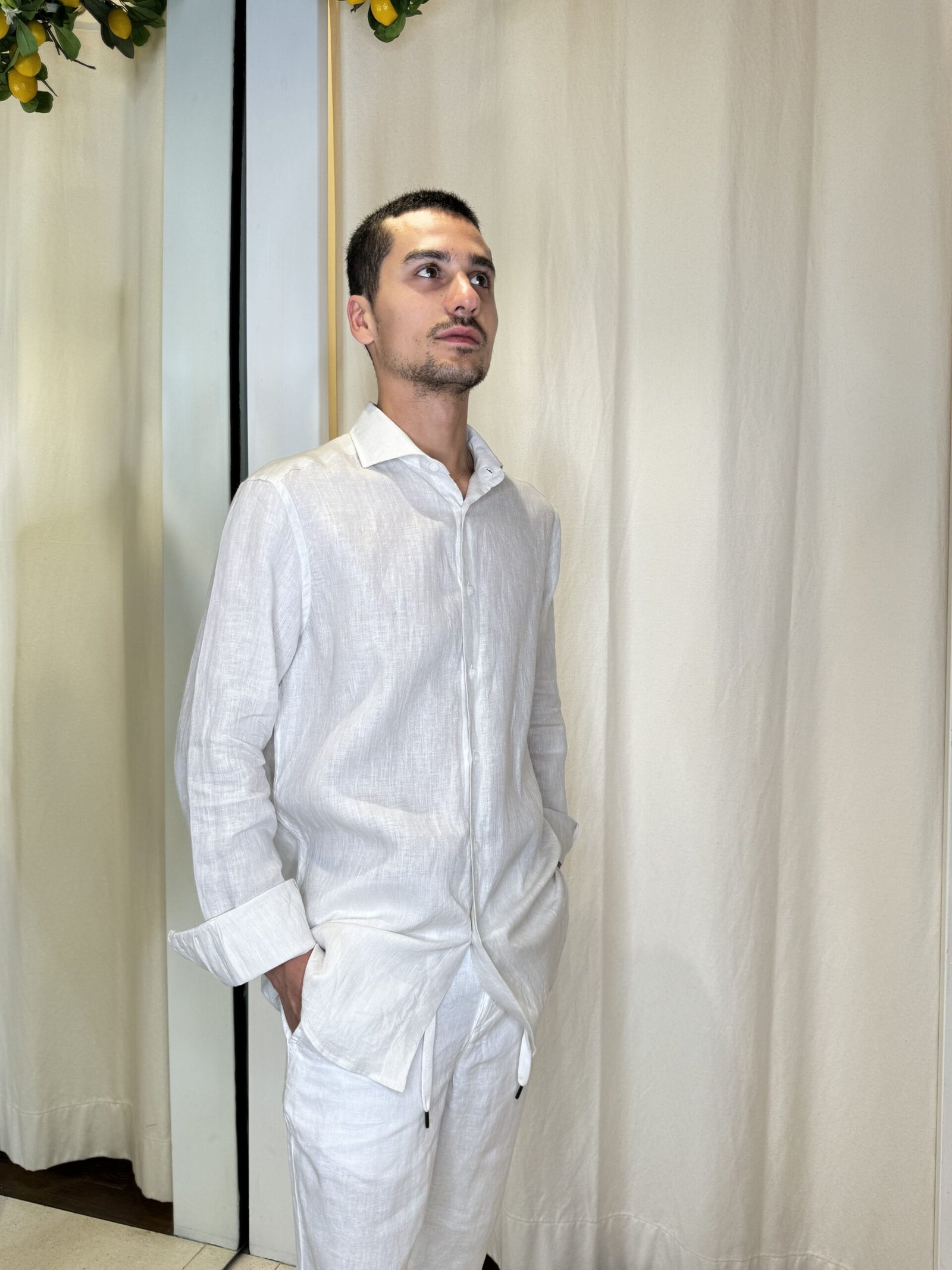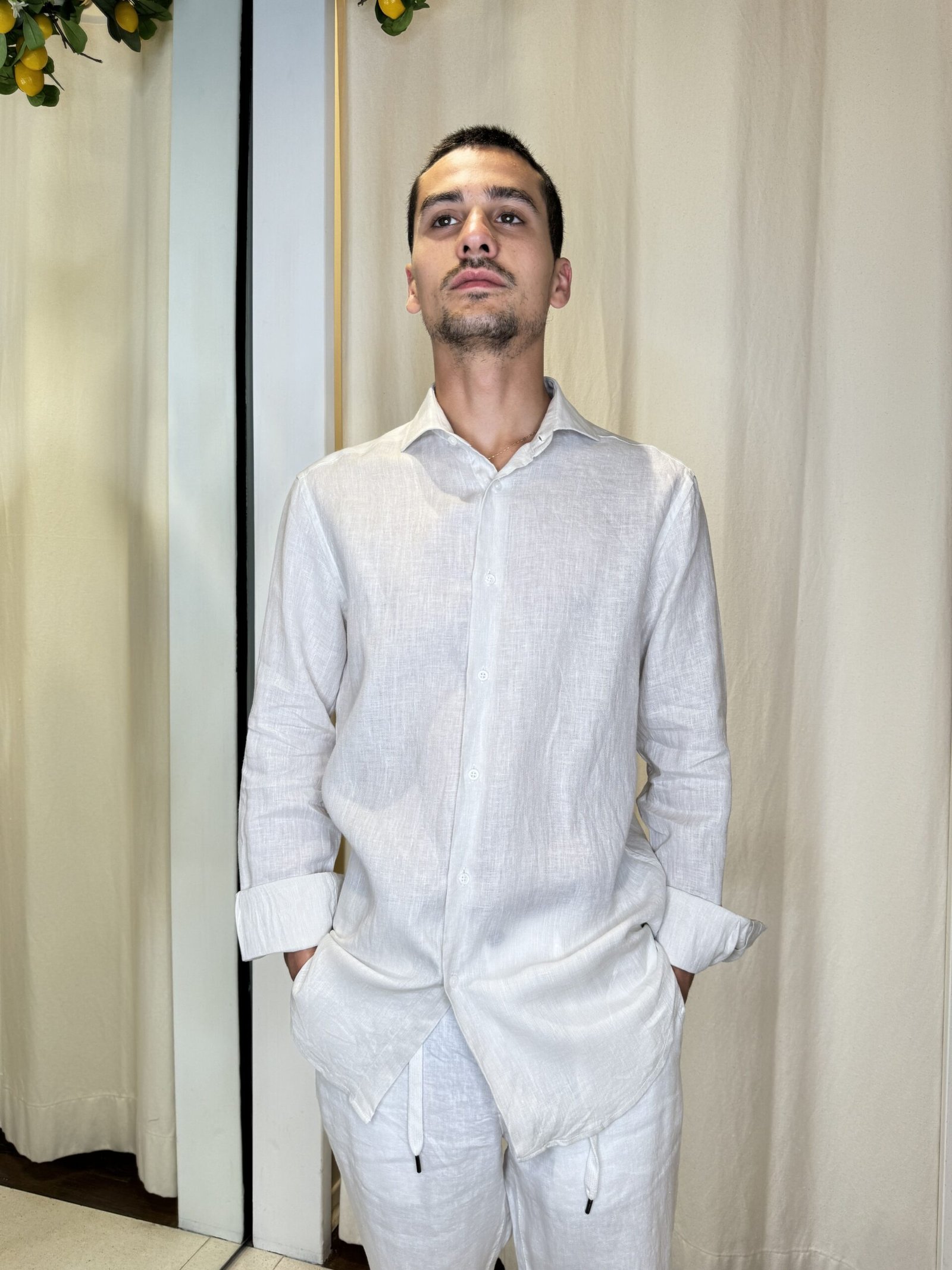 Consigliamo di abbinare la camicia ai nostri pantaloni, disponibili sia nella versione lunga alla caviglia o corta al ginocchio.